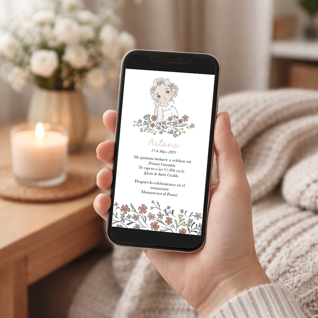En un plazo de 3 a 4 días la recibirás en archivo digital por email y ya podrás enviarla a todos tus invitados por cualquier vía digital.